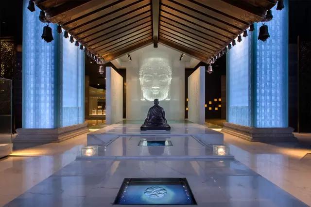 映入眼簾的便是“千年對望”的時(shí)空長廊,踏上步道,腳下七步生蓮,立柱搖鈴輕響,空氣中還有熏香的味道。而長廊盡頭,是玄奘法師面對著佛陀微笑。