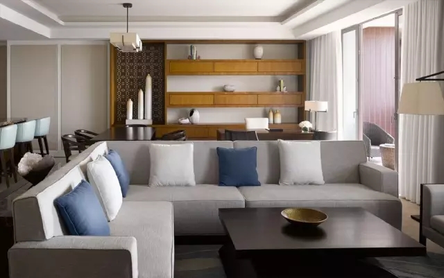 享譽國際的HBA酒店設(shè)計公司為文昌魯能希爾頓酒店打造出與海南島壯美風(fēng)光融為一體的奢華室內(nèi)設(shè)計。金螳螂負(fù)責(zé)酒店的宴會廳、全日制餐廳、泳池、健身房、公共區(qū)域及各型客房的裝飾,歷時近兩年時間。