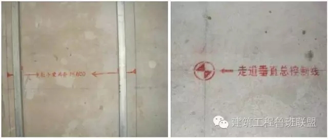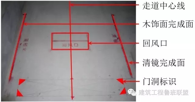 此種放線方法稱為平行放線法,也稱為走道施工法或門套成品化放線施工法。